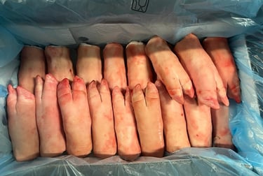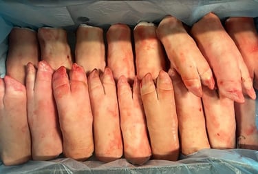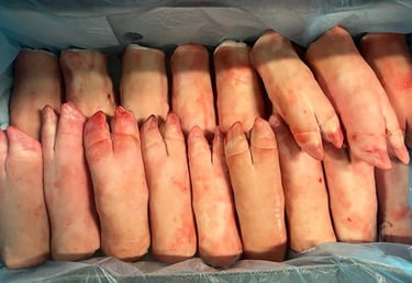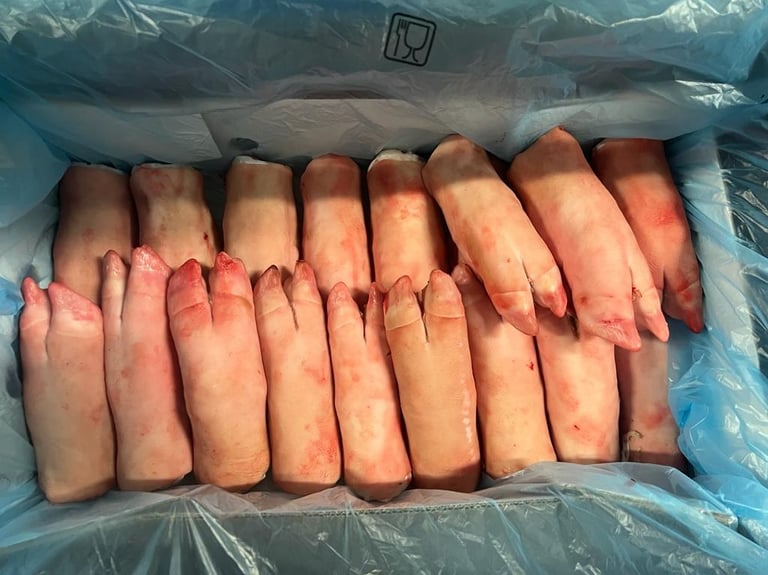 All types of lean cuts or trimmings, bellyes, loins, collar, hams, shoulders, ears, tails, front feet, ribs, etc.