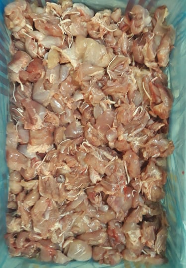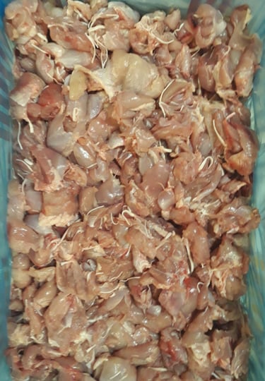 Chicken (breast, thigh, MDM, breast trimmings) and turkey (breast and thigh)